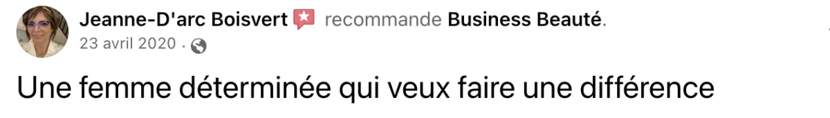 Entrepreneure de passion, experte en systèmes de rentabilité, je suis coach d’affaires, formatrice et conférencière. J’ai fondé Business Beauté en 2016 et tout récemment “l’Académie Business Beauté” afin d’aider les propriétaires de l’industrie de la beauté à exceller dans la gestion de leur entreprise.